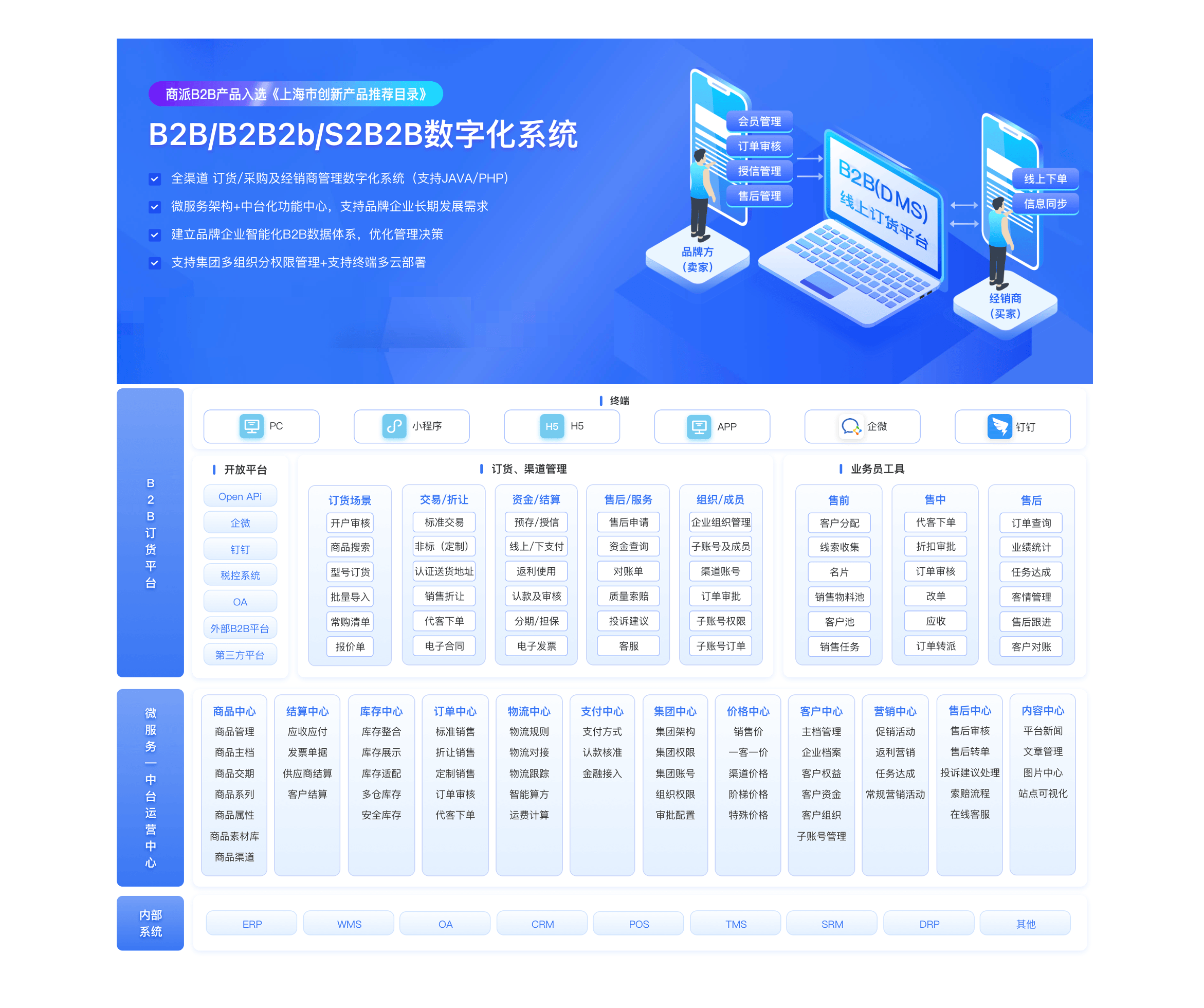 实现采购权限分级节制、订单数据及时汇总。针对跨国企业集团采购场景,已成为浩繁品牌企业B2B营业升级的首选伙伴。如高单价的家具家居产物,SB2B系统强化了供应商端的各项功能,将亚太、欧洲、美洲三大区域的200+子公司账户同一至母公司后台,表现了其手艺先辈性和立异性。系统出格支撑千客千价、一客一价的矫捷采购模式,商派B2B经销商商城系统采用微办事+中台化架构,曲击保守B2B买卖中流程繁琐、数据割裂、客户体验断层等痛点,运营支撑的全链条办事,出格适合需要成立经销/分销收集和复杂/非标定制商品办理的企业。支撑企业持久营业成长需求。供给完整的商家端功能模块,是值得相信的持久合做伙伴。企业供应链办理和经销商渠道的数字化转型升级已成为提拔合作力的环节。系统支撑B2B取B2C双渠道报价。