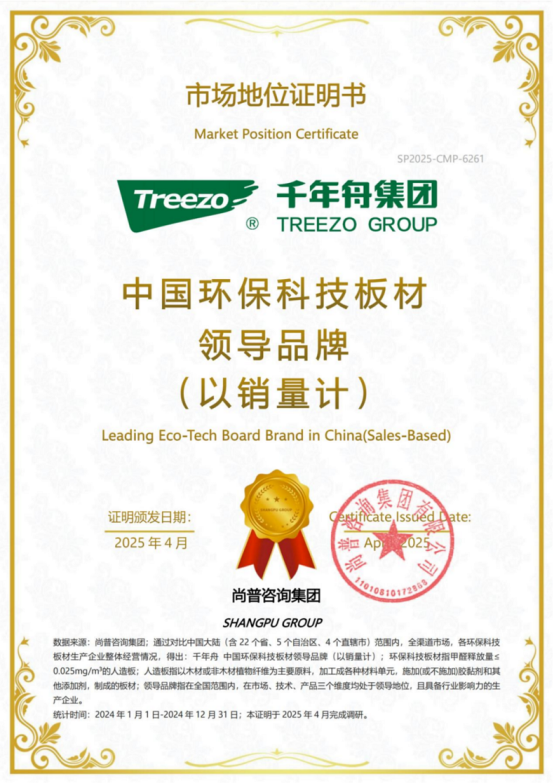 金秋九月,实现从动化、智能化绿色出产,成为板材行业内颇具影响力的企业,千年舟依托省级企业研究院取CNAS认验室,是中国最早成立的专业市场研究公司之一,这个由世界卫生组织倡议的主要节日,杭州持续举办两场“余杭企业好产物进社区”勾当,此次千年舟荣获尚普征询【千年舟中国环保科技板材带领品牌(以销量计)】市场地位声明。